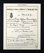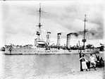 HMS Undaunted was a light cruiser commissioned in 1914, having a top speed of 28.5 knots carrying two 6in and six 4in guns as main armament with a compliment of 318. In 1917 she was appointed as leader of the 10th Destroyer Flotilla of the Harwich Force. James remained with the Undaunted until January 1918. After leaving the Undaunted, James went to the R N college at Greenwich to study and qualify in Gunnery for which he had applied and eventually progressed to Gunnery School Staff. Meanwhile, he was awarded a Masters Certificate for foreign-going ships.