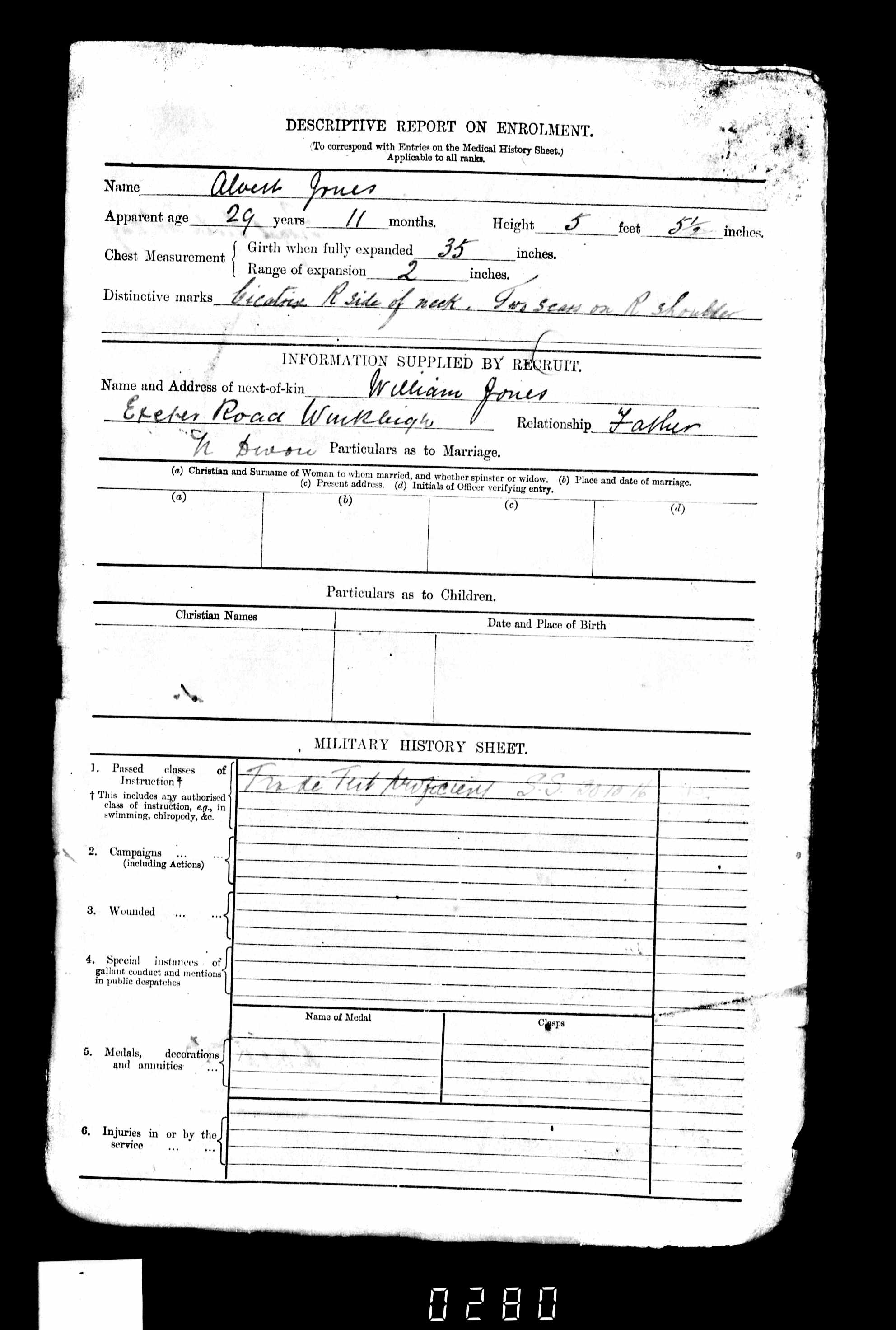 Document 8 records that he remained medically A1 throughout the war, and we can therefore conclude that Albert was able to return to work in the family smithy. He was awarded the Victory and British medals: he had served his country well and Winkleigh could justly be proud of him.