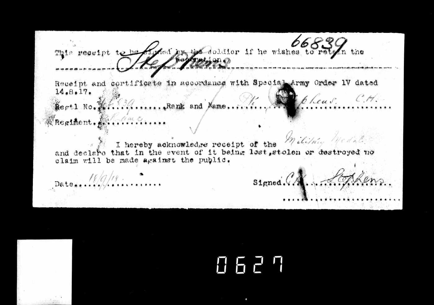 Exactly a year later, and as a result of this action, Stephens was awarded his Military Medal, referred to in the Chulmleigh Deanery Magazine in October 1917. The citation appeared on 28th September 1917 in the ‘London Gazette.’: