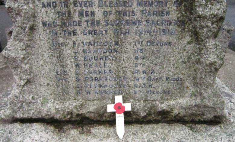 The Western Times dated 25th October 1918 reported 'News has been received of the death through drowning of Pte. Percy Beardon, second son of Mr. and Mrs. Beardon, Hollocombe. He was 31 years of age.'