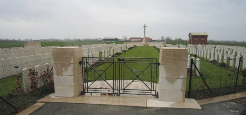 During these four days 28th September to 2nd October the Battalion had suffered 4 officers wounded, 10 other ranks killed, 1 died of wounds, 45 wounded, 2 gassed, and 10 missing. These casualties include Private Berry. It is highly likely that the reference to ‘1 died of wounds’ could refer to Private Berry, if once out of the line and with time to write up his full report for the War Diary, news had reached the Adjutant from the Haringe Casualty Clearing Station (nicknamed ‘Bandigem’) that having been evacuated there with the others, William Berry had died of his wounds. Bandaghem, like Dozinghem and Mendinghem, were the popular names given by the troops to groups of casualty clearing stations posted to this area during the war. The cemetery site was originally chosen in July 1917 for the 62nd and 63rd CCS and burials from these, together with the 3rd Australian CCS and other hospitals, notably the 36th Casualty Clearing Station after 1st October 1918, continued until the end of that month. The cemetery contains 772 Commonwealth burials of the First World War.