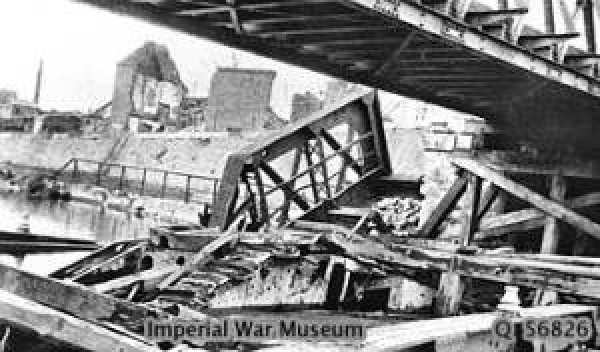 The 4 sections of the machine-gun company had joined their battalions at Sorrel and moved to their assembly positions west of Gouzencourt. Zero hour was 6.20 on 20th November. Held for a time in reserve, the 88th brigade moved forward over the German front line already taken: the ‘brown’ line. Advancing through the German ‘blue’ support line and on to ‘red’ reserve line, the 88th were able to push forward towards the canal and the higher ground beyond it. The 1st Essex took up a position to command the bridge, already broken but still available to be crossed by infantry, and the machine-guns were sited accordingly. See photgraph on the right of the bridge taken after the war. The section 3 commander, 2nd Lt. Lys M.C., having completed this task, went back to Battalion H.Q. to report the situation. During the night section 3 ‘mopped up’ the north-west corner of the village of Les Rues Verts. Section 3 was then relieved, replaced by the reserve guns of the Newfoundlanders. Section 4, supporting the 4th Worcesters on the first day, had pushed on, crossing the canal at the lock gates and taking up positions on the higher ground before nightfall, where the guns were sited to defend a rapidly dug defensive line. On the left flank of the first day‘s advance, 2 guns in section 1 had advanced with the Newfoundlanders while the other 2 had been allocated to the 2nd Hampshires as they crossed the German old front line. The Newfoundlanders had come under intense fire from German guns situated on the rising ground on the far side of the canal, but the section 1 guns gave very effective covering fire to support their advance. Once the broken bridge and the lock gates had been rushed and secured, the Newfoundlanders together with their two guns could advance to the higher ground and silence the German guns and the remaining snipers. Meanwhile, the sub-section of 2 guns supporting the 2nd Hampshires, who had been the first to discover that they could cross the canal via the lock gates, had somehow become separated from the infantry at the ‘brown’ line. As a result the sub-section was transferred by brigade H.Q. to add further support to the 4th Worcesters and to section 4, now in the most forward position. While carrying this out, one gun was immobilised by a sniper, the crew becoming casualties. The remaining gun rejoined the Hampshires and dug in.