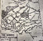 Early May saw the Brigade move into a position in the Fricourt area, the area of the 7th Division’s attack on July 1st where the usual pattern of life continued with both sides now using kite balloons for observation, particularly useful in breaking up working parties. The Germans were fast strengthening their front line and support trenches - the ‘great push’ was now an open secret, and patrolling on both sides gave targets for the guns in both armies. Typical is the entry for May 31st: ‘12th Battery retaliated for trench-mortar fire from Fricourt. Loud cries were heard from the enemy lines’. A British raiding party got caught in the enemy wire on June 2nd, with many casualties. A small German mine exploded uselessly on 3rd June but after that things were very quiet indeed, though doubtless the Germans were strengthening their dug-outs and wire in anticipation.