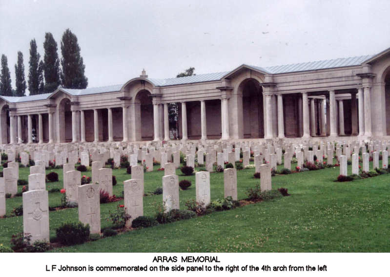 Lawrence Johnson has no known grave. He was simply blown to bits by a shell bursting in front of the trench, or in the trench, in a party with 5 other men, three of whom were a bit luckier. Leaving his equipment and his valise with all his personal gear behind, but taking his revolver, he would have gone off that morning, taking his turn with a few of his Company, most likely his platoon, to command the fatigue party, looking forward to as decent a dinner as possible on his return. There would have been no good-bye letters to his mother, or Ronald or Evelyn. He had been in two major battles, one forever memorable, the other best forgotten, and had survived. He would have written home that the Battalion was in rest, that there was training and for the subalterns occasional fatigues, but that for the time being he was safe. Then, just short of his 21st birthday, the telegram would have arrived at the Old Parsonage, and some time later his belongings.