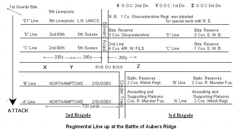 Trench mortar batteries were numbered according to the infantry brigade to which they were attached. In the first half of 1915, the 2nd Brigade 1st Division consisted of 4 ‘old army’ regular battalions - 2nd Bn. The Royal Sussex, 1st Bn. The Loyal North Lancashire, 1st Bn. The Northamptonshire and the 2nd.Bn. The Kings Royal Rifle Corps. They were joined by two Territorial battalions, the 1st/5th Bn. Royal Sussex in February 1915 and the 1st/5th Bn. The King’s Liverpool Regiment. The 2nd. Trench Mortar Battery (attached to 2nd Brigade 1st Division) was in the process of formation, and was not fully completed until 27th November 1915. Sgt. Medlock must have been among the very first to be involved. There is a memorandum in the 1 Corps war-diary dated 8th April 1915 from the Brigadier-General, General Staff, First Army, to 1 Corps regarding the issue of both the 1½” and the 4” mortars to 1st Division. This gives us the useful information that the Corps Mortar School had been established at St. Venant (15 kilometres north-west of Bethune), so it was here that Sgt. Medlock was sent to train on these entirely new weapons. Dated 8th April 1915 it shows that it must have been about this time that he and the other newly trained men arrived from the Mortar School to join the Division. An addenda to this account, quoting the entire document, is attached. It stresses that the mortars will be used ‘not only in actual trench warfare, but also in co-operation with infantry in attack. The mortar offers an efficient means of attacking houses and defending localities, and if properly handled in an advance will materially assist the infantry, more especially when the latter are unable to obtain effective artillery support’. From this instruction we can see that it was intended that the mortar section attached to the 2nd infantry brigade at the battle of Aubers, 9th May 1915, the first great Spring offensive in which the 1st Division was involved, was to be used in the initial attack, moving forward with the infantry, and as such was destined to suffer the same fate as the 2nd Battalion Royal Sussex to whom it was attached. We can assume therefore that it was in this operation that Sgt. Medlock was severely wounded. An attached report of 2nd Infantry Brigade on the Battle of Aubers informs us that the brigade mortar section was allocated to the battalion of the 2nd. Royal Sussex, situated in the centre of the 1st Division operations, just to the right of the Cinder Track (see attached sketch map from the 1st Division war-diary).